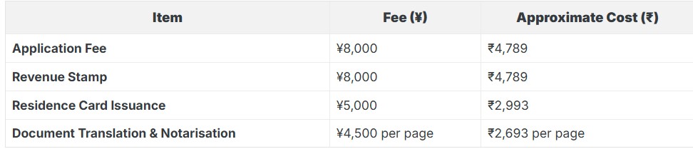 Estimated Costs for Indian Applicants Seeking Japan PR